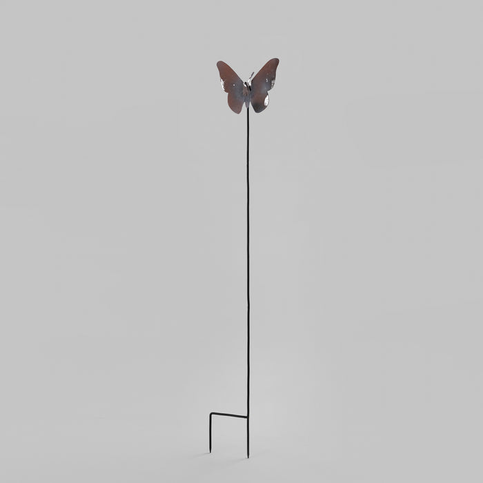 This exquisite garden stake features a charming butterfly design, meticulously crafted from durable steel. Its intricate detailing captures the delicate beauty of a butterfly, making it a captivating addition to any garden setting. The robust steel construction ensures longevity, allowing it to withstand outdoor elements gracefully. Ideal for adding a touch of whimsy and elegance, this butterfly garden stake can be strategically placed among flower beds or along pathways, creating an enchanting visual interest. Its presence not only enhances the garden's aesthetic appeal but also serves as a delightful reminder of nature's simple elegance. Perfect for garden enthusiasts looking to infuse a bit of artistry and durability into their outdoor spaces.