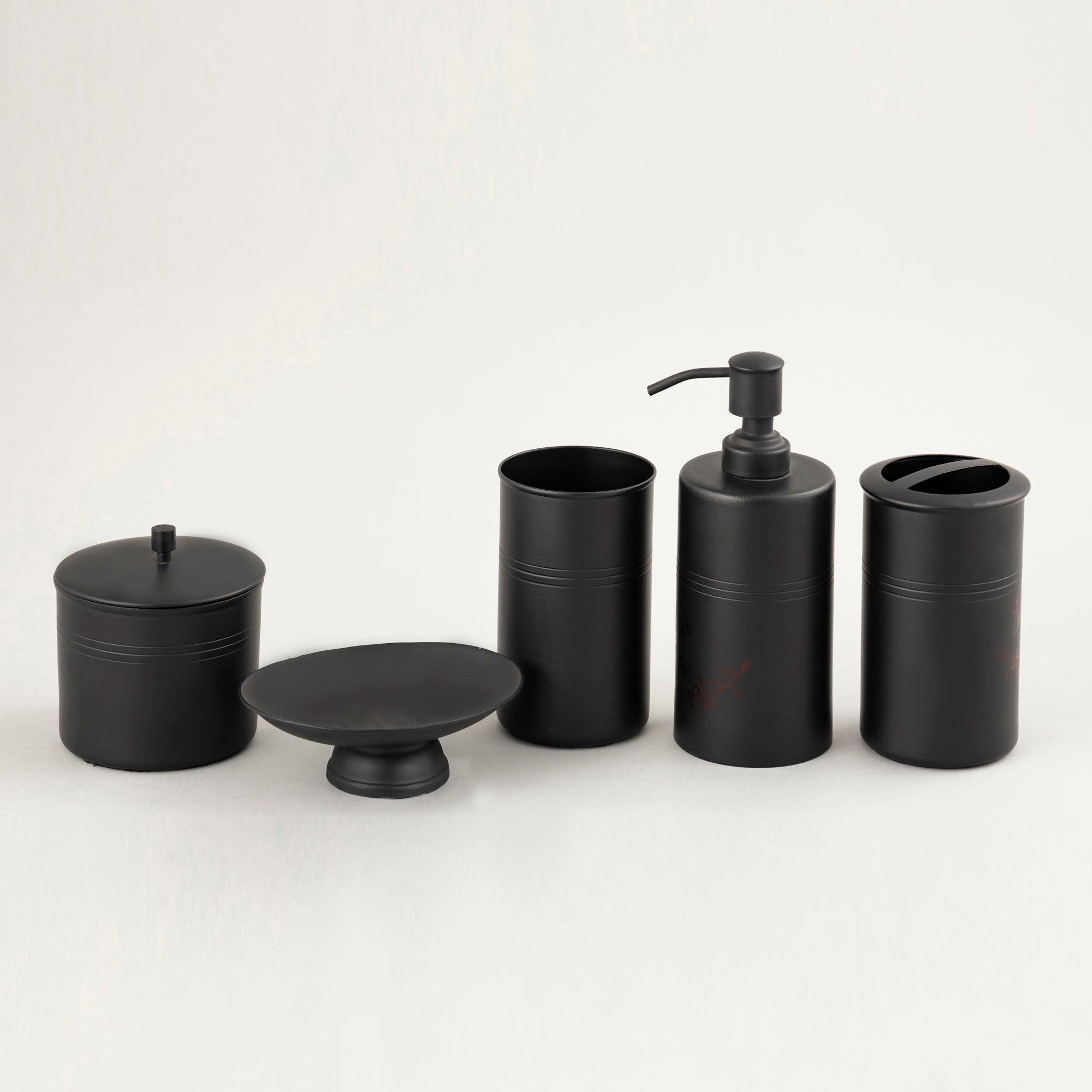This matt black finish bath set of 5 accessories will add a chic and industrial look to your bathroom decor. Its smooth and classy look makes it a perfect gift item for housewarming and business parties. Rinse with mild soapy water and wipe with a soft cloth.
