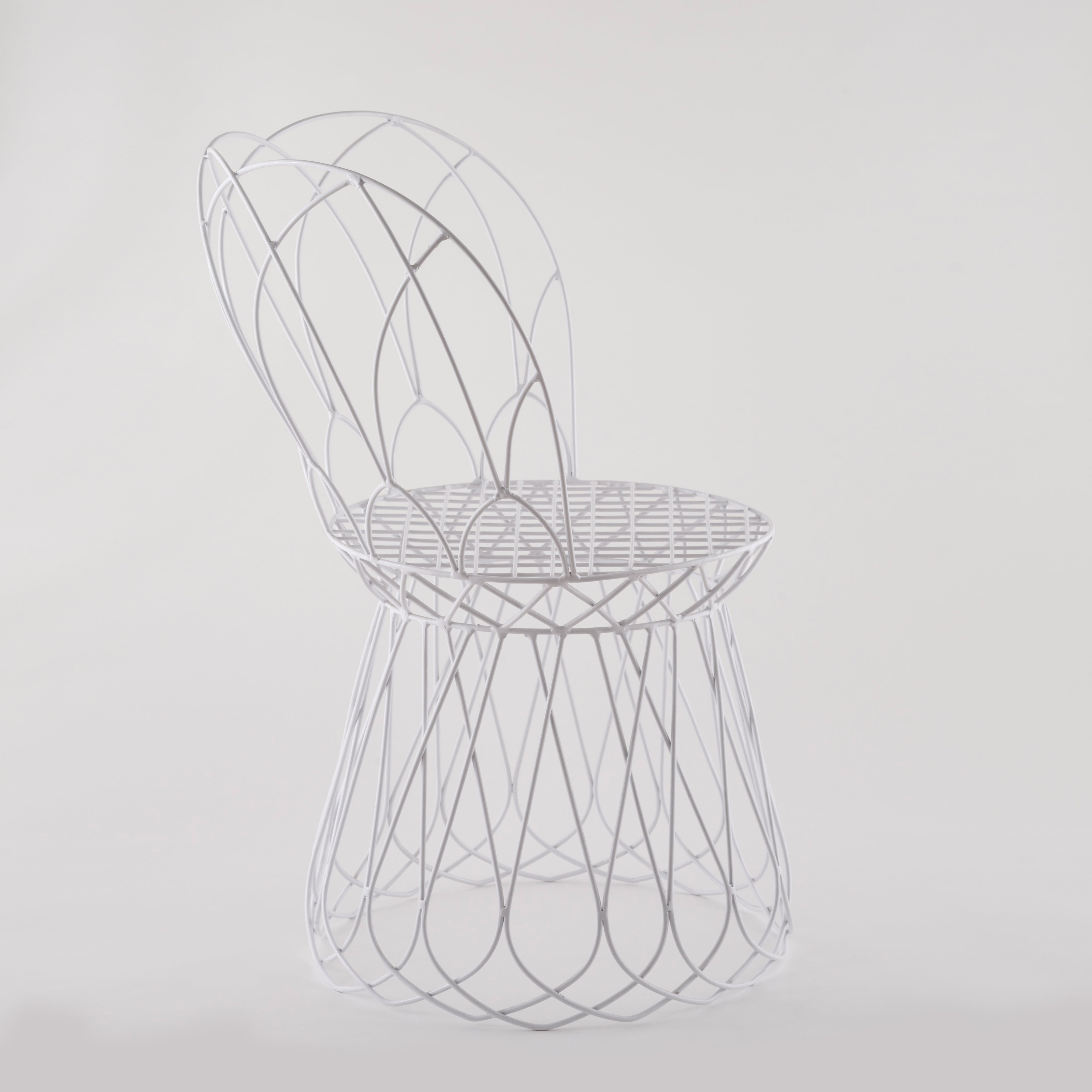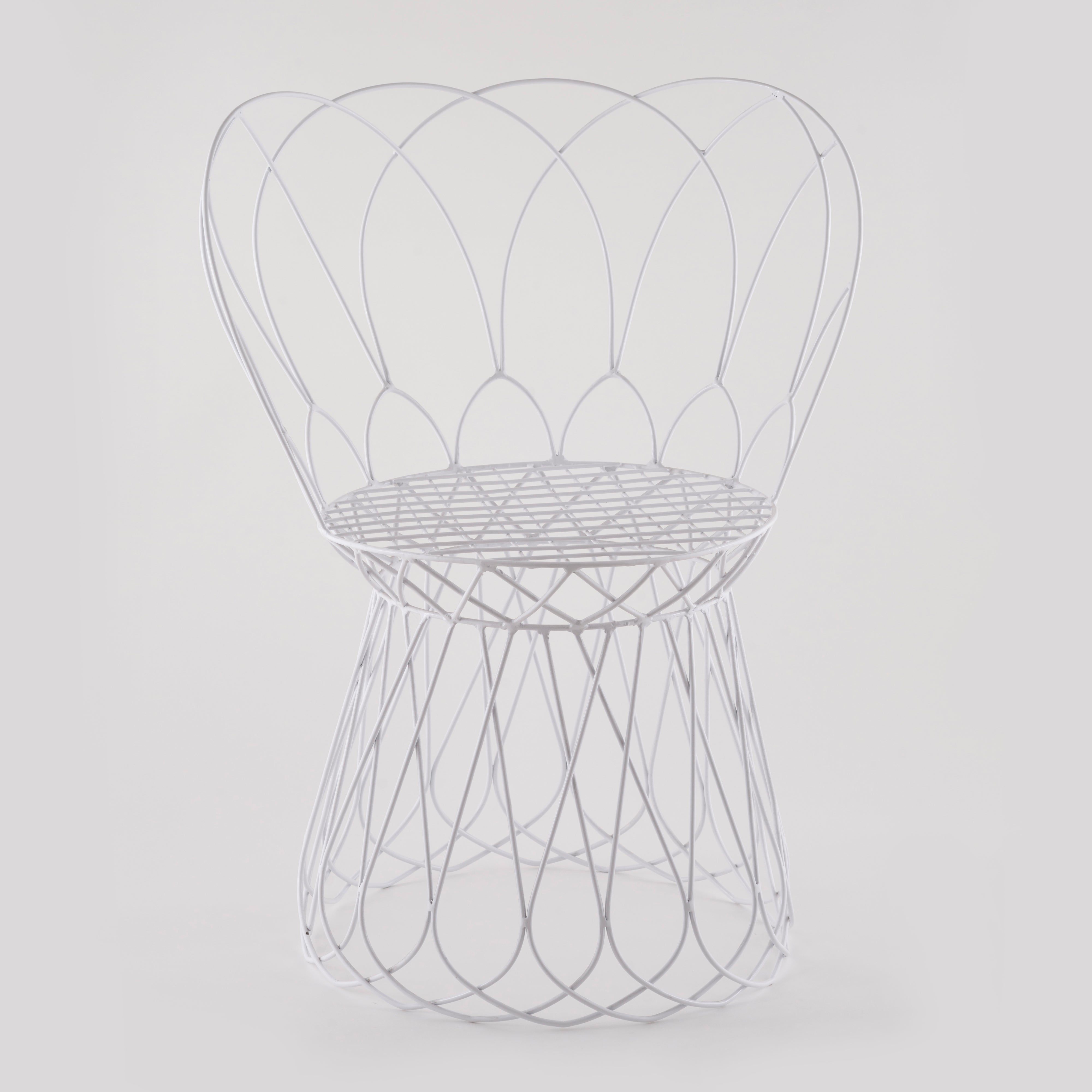 The trendy iron wireframe white chair with powder coating gives your home, office, cafe, garden, etc. The ultra-modern design is bound to leave everyone spellbound. It can fit any space and provide a comfortable feel throughout the day.