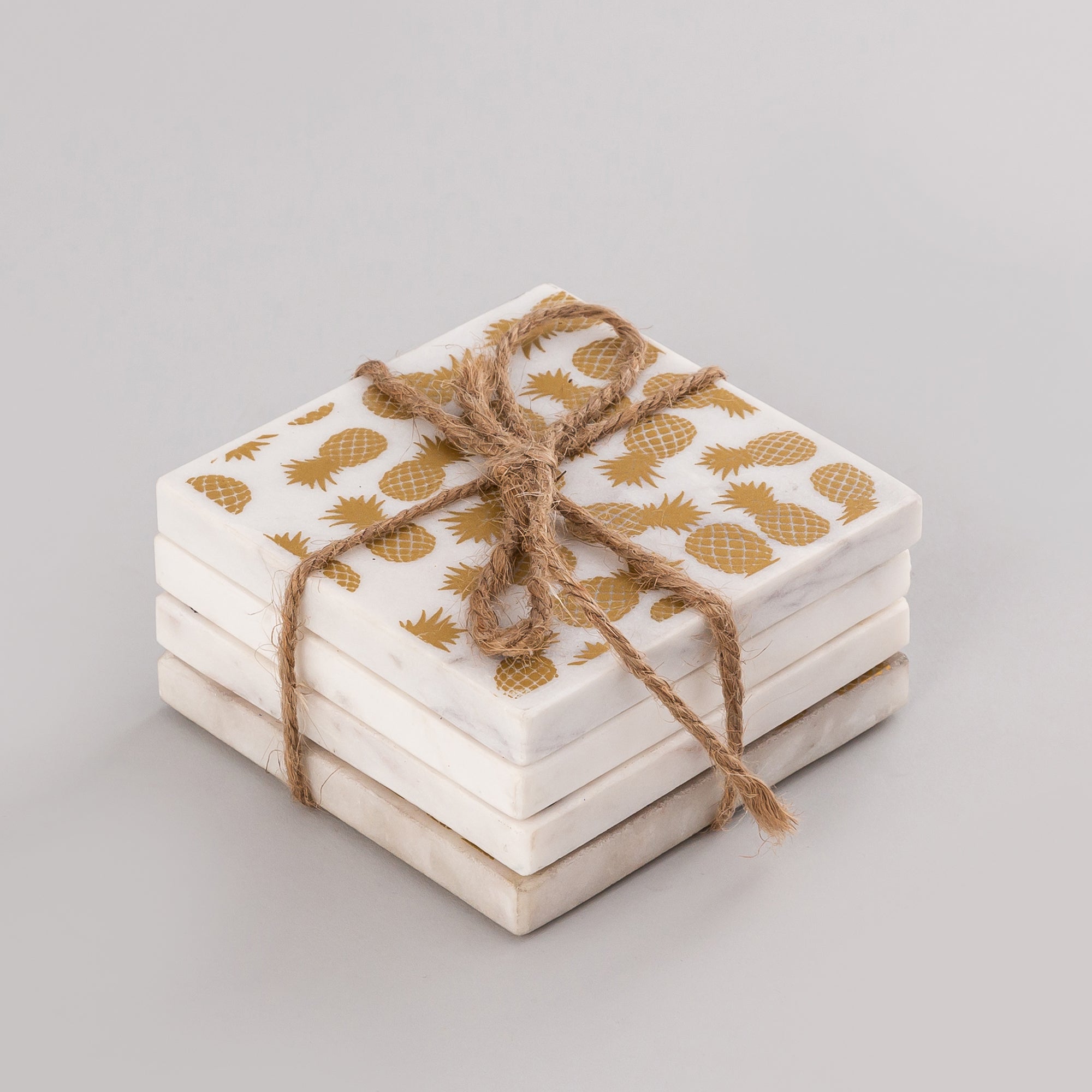 These square-shaped white marble coasters screen printed with a golden pattern are bound to enhance the beauty of your place. Give a touch of traditional Indian heritage to your existing tableware. Treat them with love and clean with dry or damp cloth only.