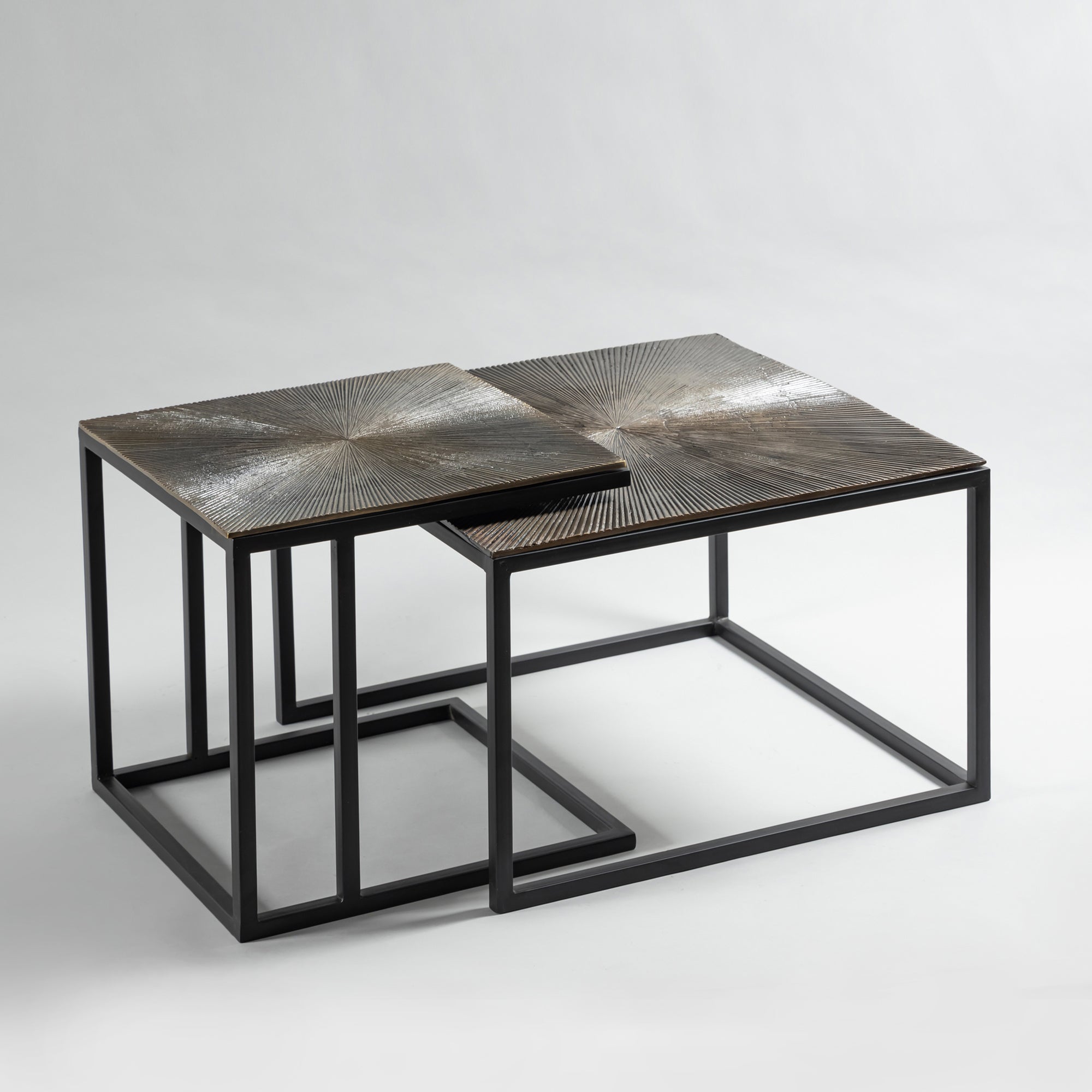 This rectangular black iron and aluminium top stylish table will add a modern accent to your existing elegant home and office decor. This stunning and sophisticated metal table will enhance the look of any room it is placed in. Cleaning with a dry or damp cloth is recommended.