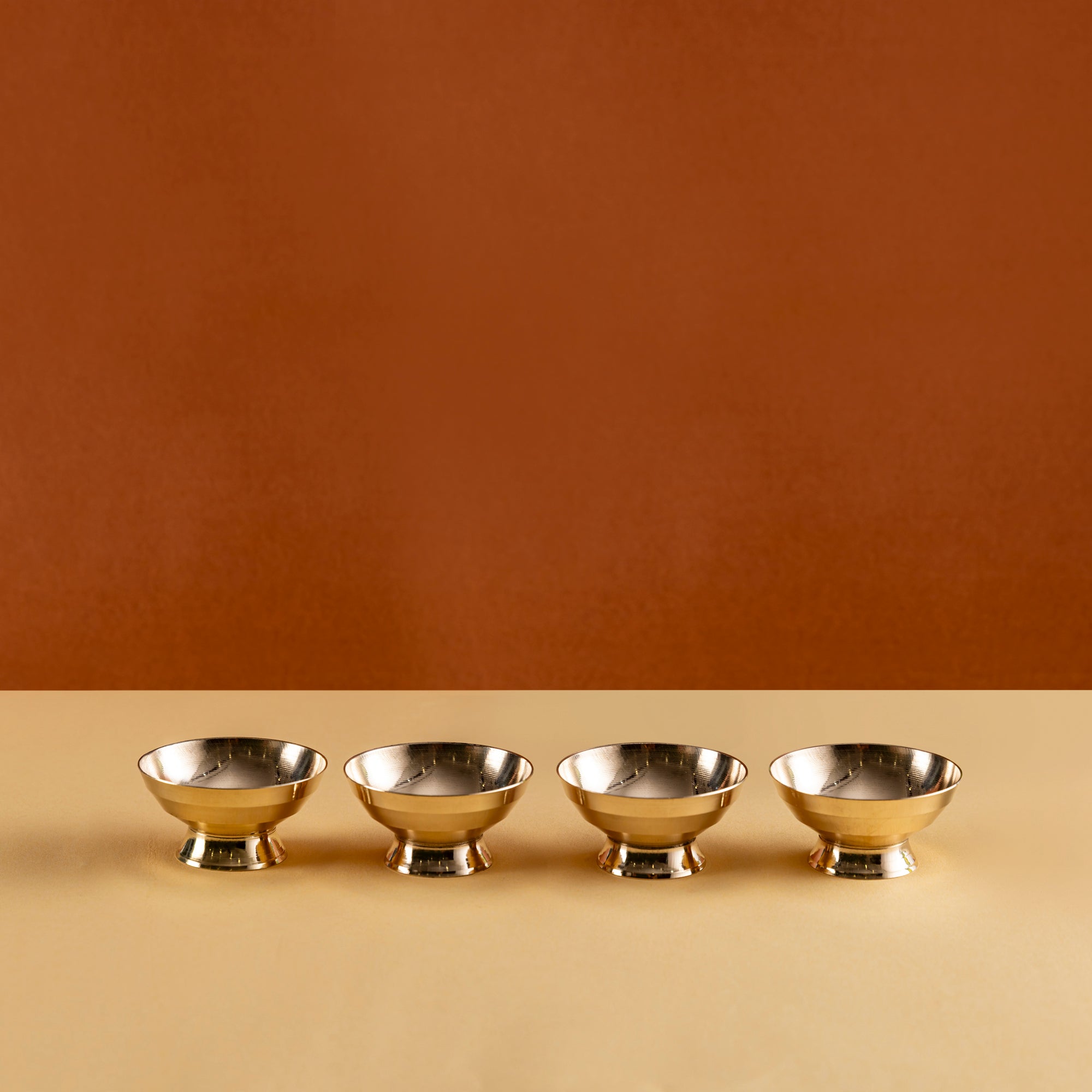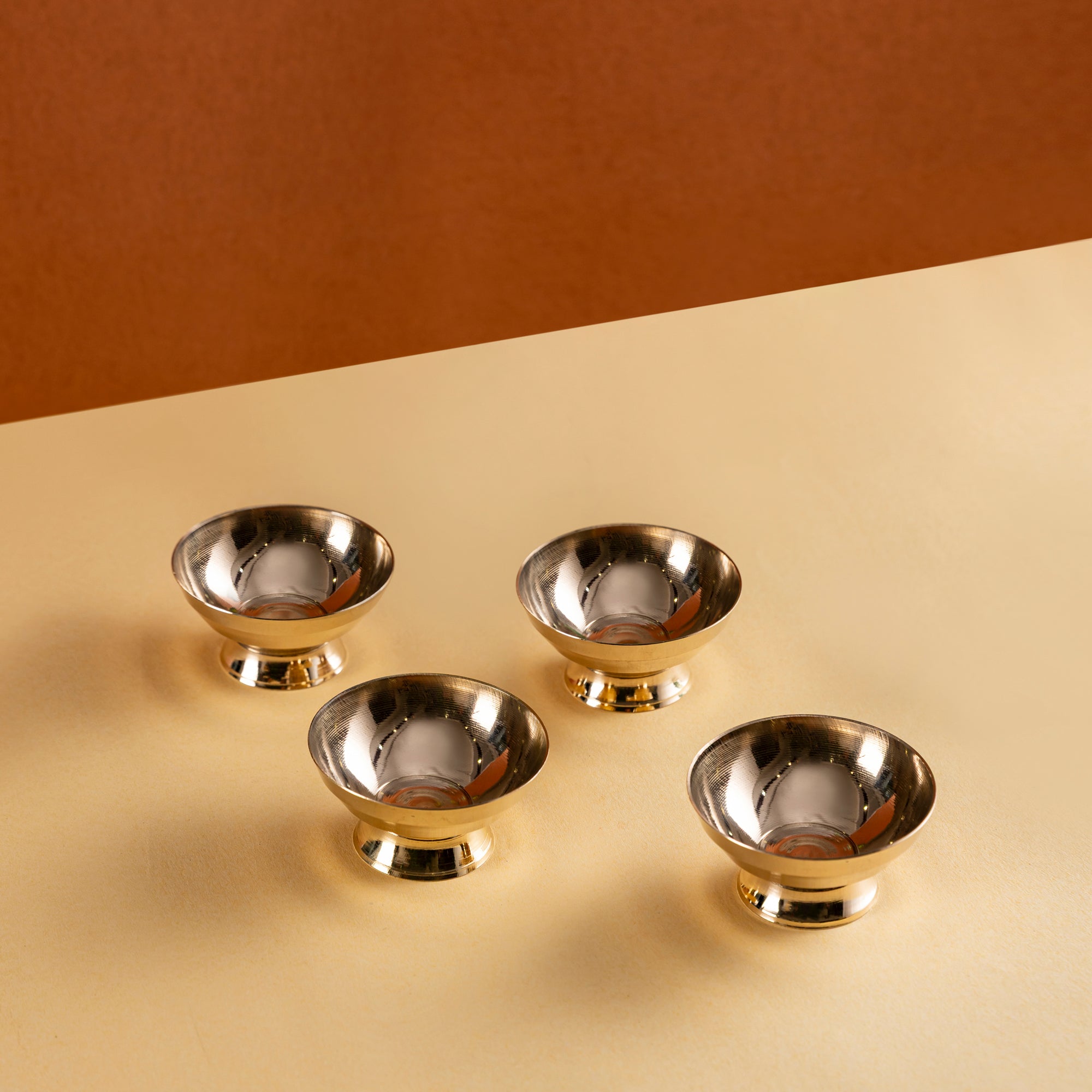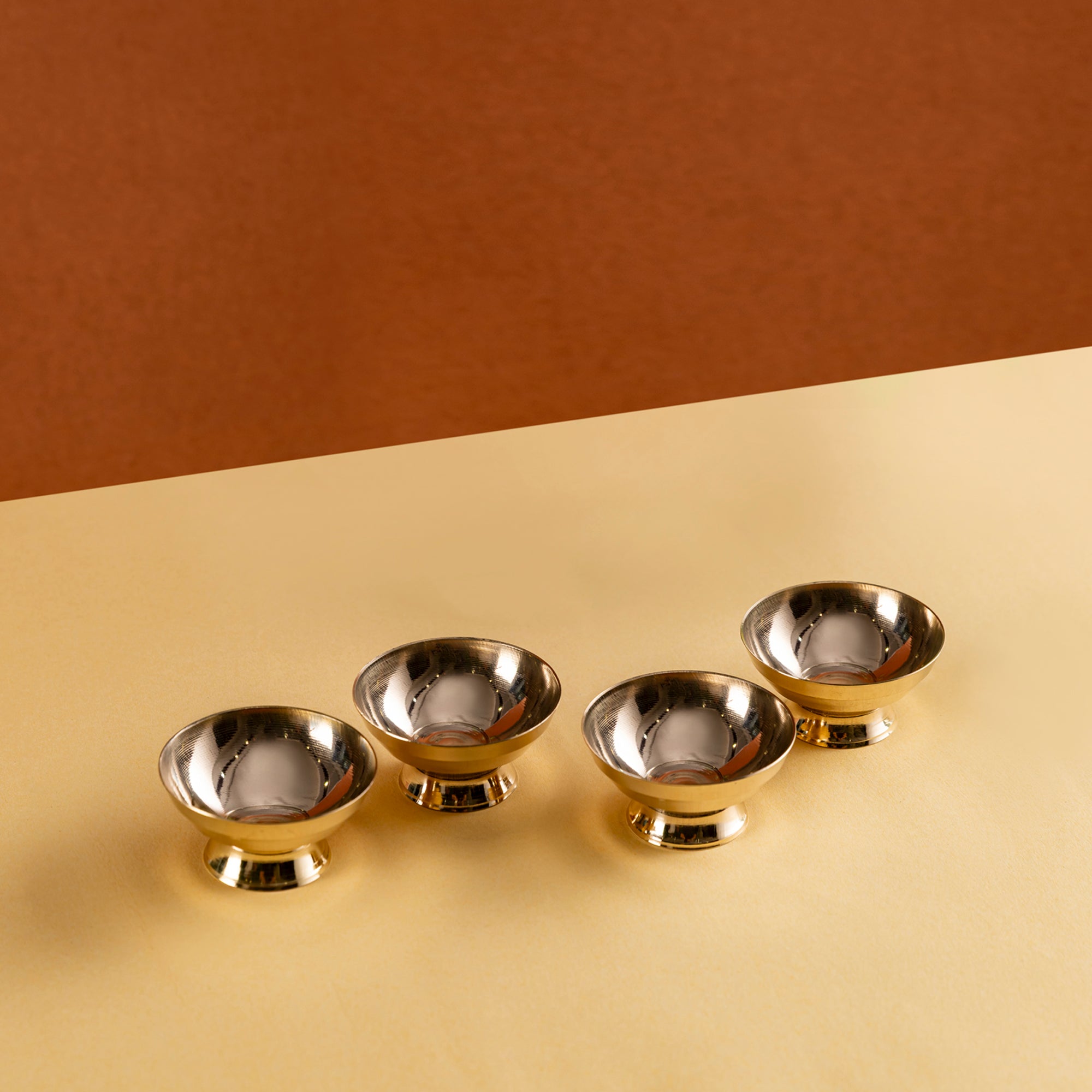 Small brass bowl diyas crafted in a minimal yet traditional design. Perfect for festive rituals, pujas, and home décor, these diyas symbolize purity and light, creating a serene spiritual ambiance.