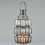 This modish handcrafted metal frame lantern with an antique copper finish will add a chic industrial look to your home and garden. The stunning lantern supports the usage of votive and pillar candles and is easy on maintenance. The beautiful geometric pattern design makes it a great gift item too.