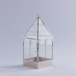 This somber house-style iron lantern with nickle plating gives a cozy look and feel to your home and garden. It is ideal for placing tealight and votive candles. The rectangular base and pyramid-shaped top design make it a perfect business gift.