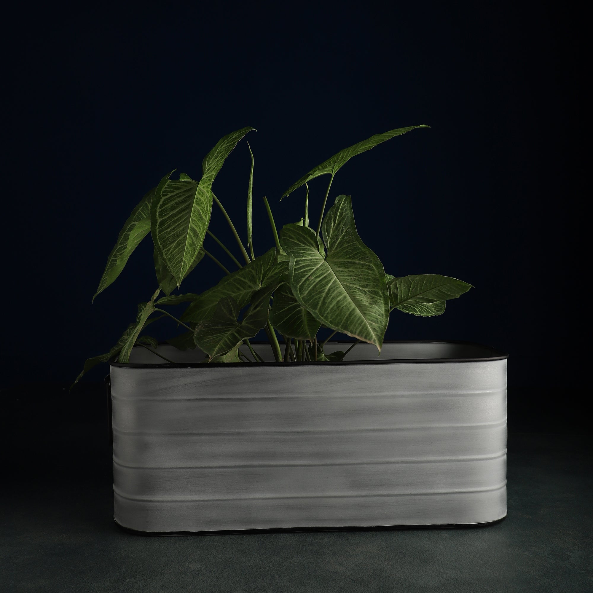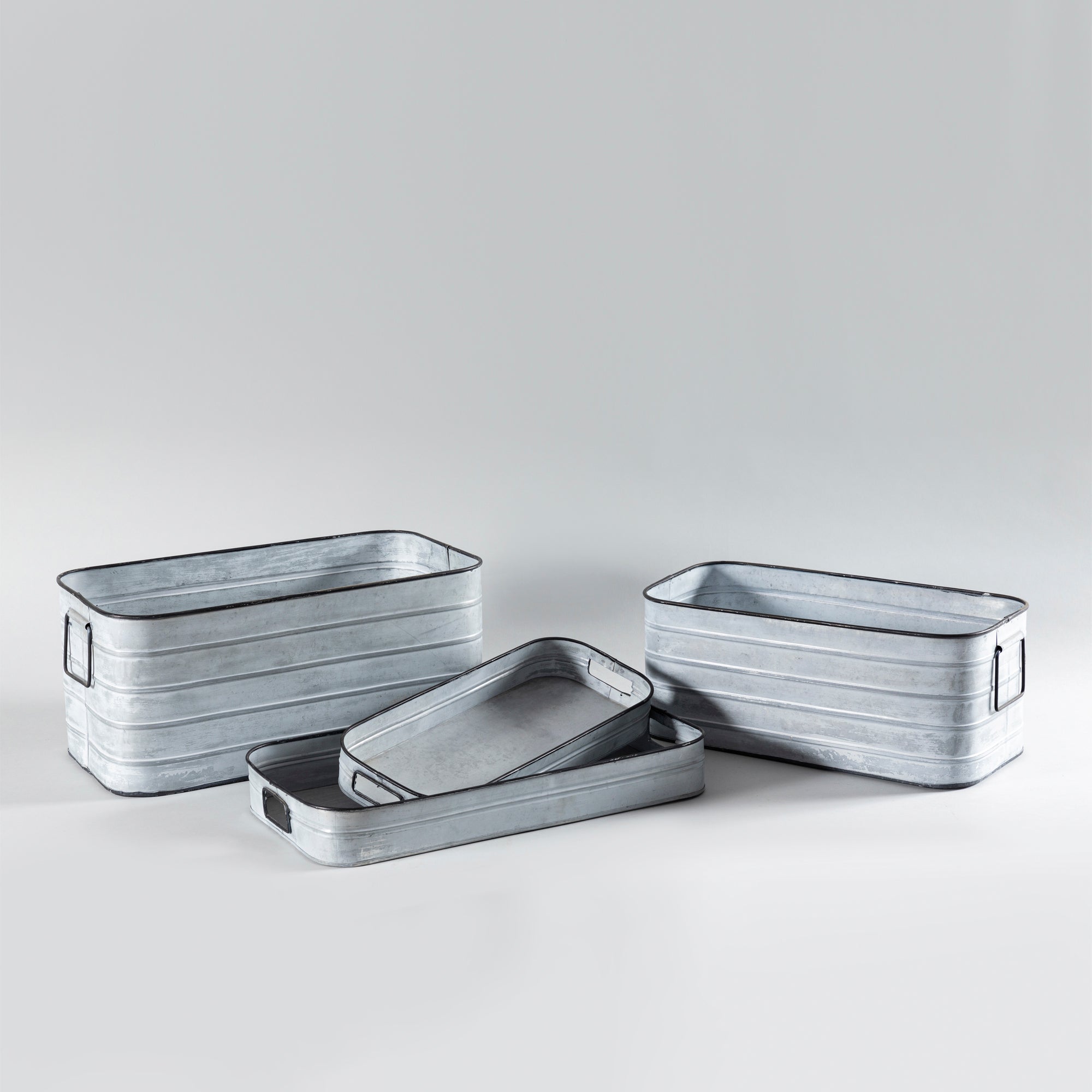 SET OF 4 GALVANIZED PLANTERS & TRAYS SET