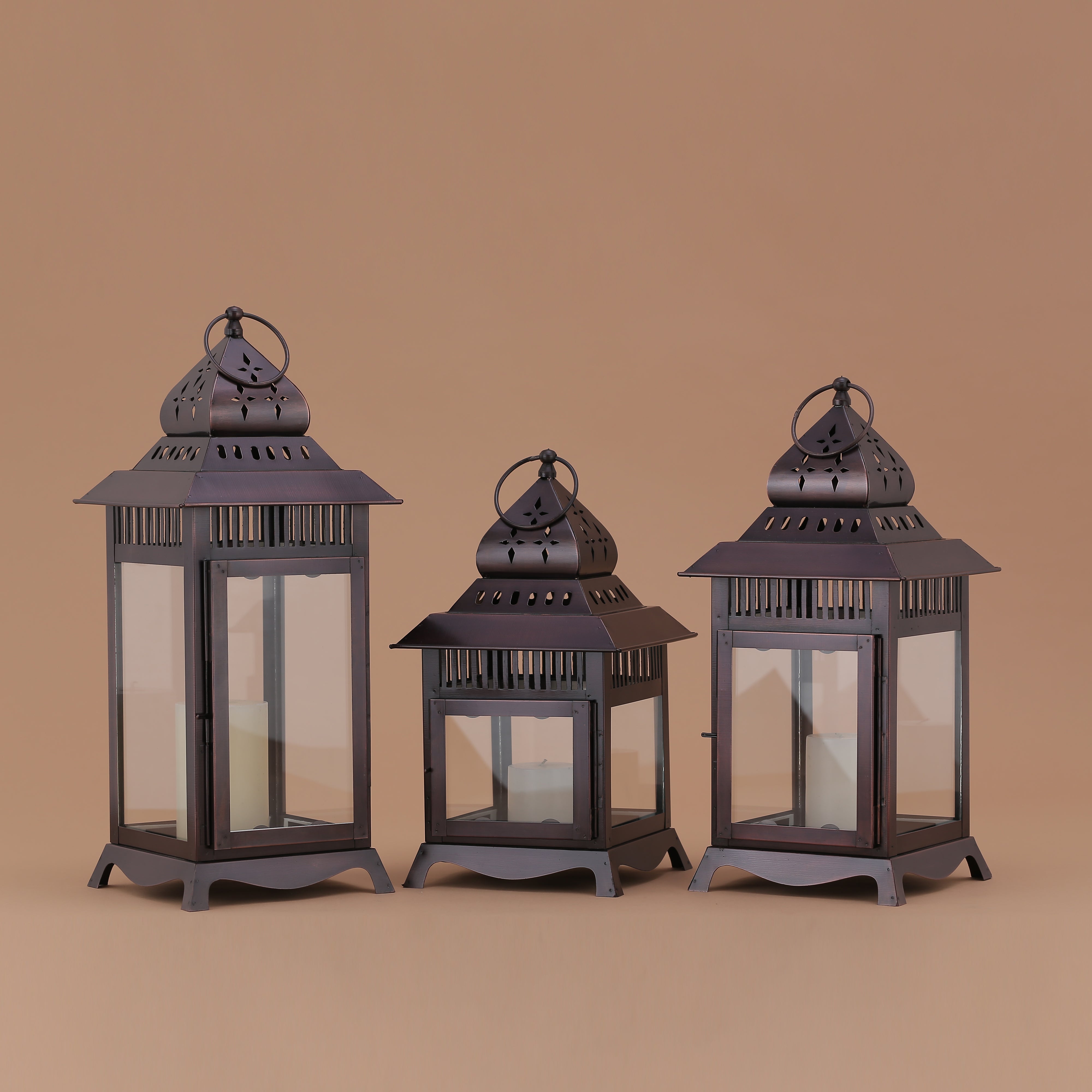 This set of 3 beautifully crafted decorative iron hanging lanterns will give a traditional touch to your interiors and exteriors. Place the candle easily by opening a small door in the front. Amaze your loved ones by gifting this royal antique black finish lantern.
