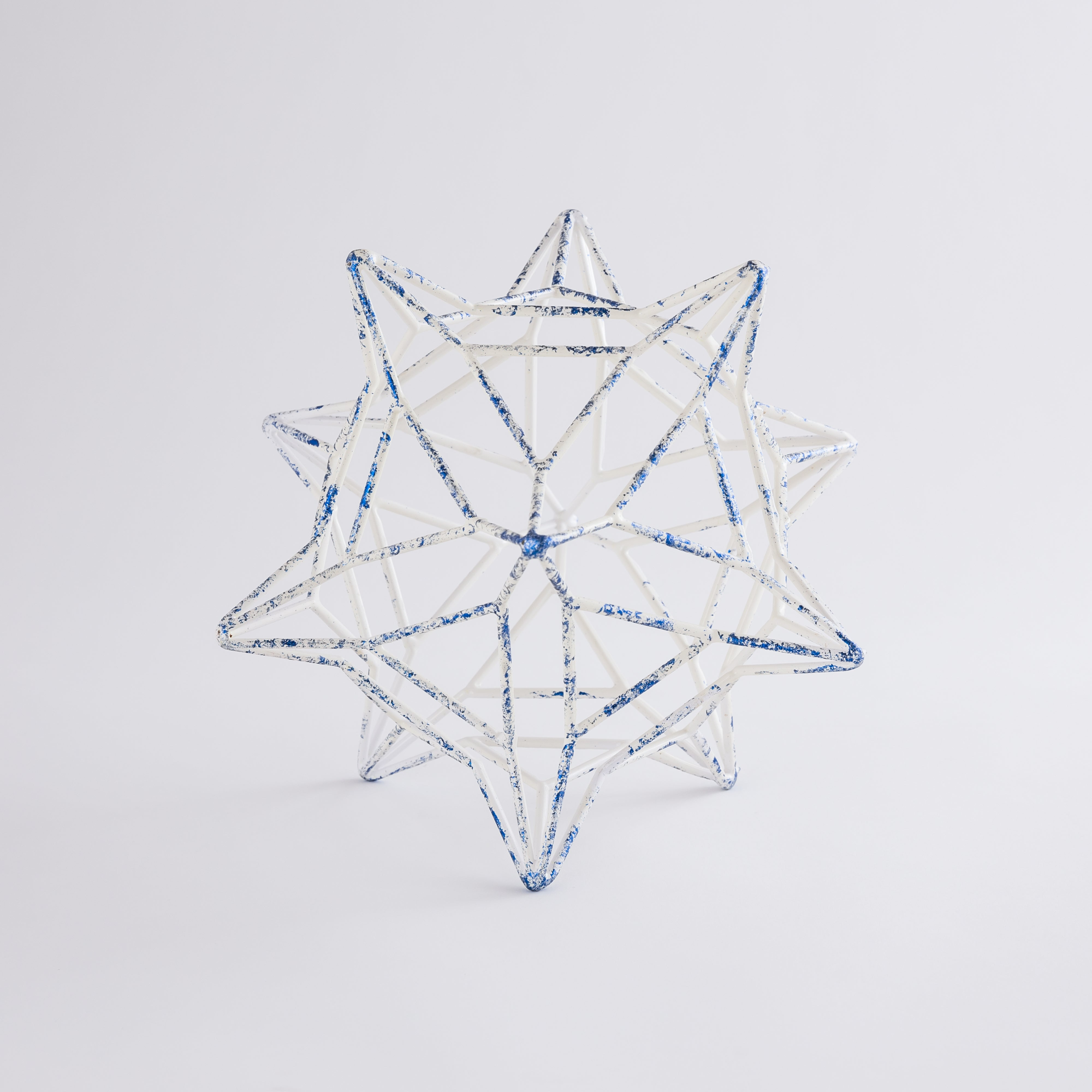 This classic star-shaped iron decorative stand with a blue and white finish will never go out of style and therefore makes a great gift item for festive occasions. This simple and trendy item will give a classic touch to your house as well. Clean using a dry or damp cloth only.