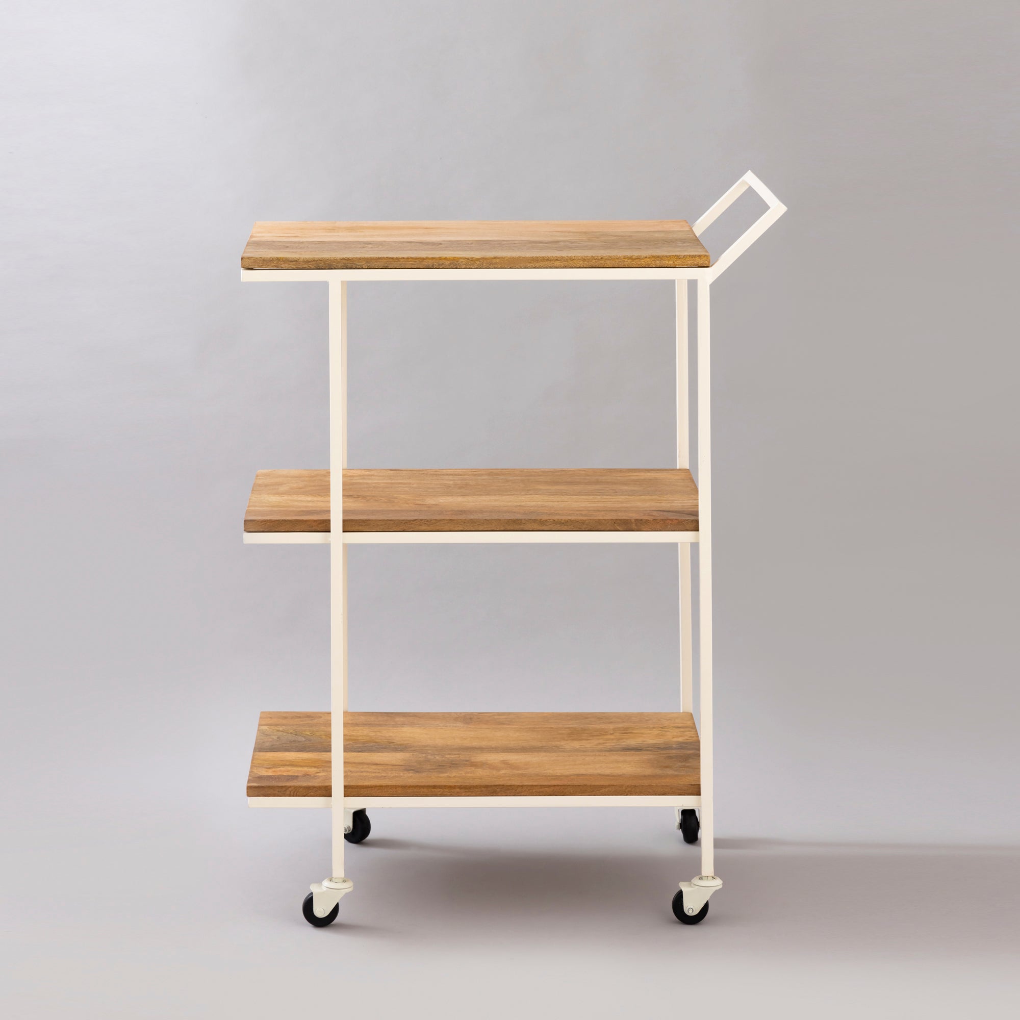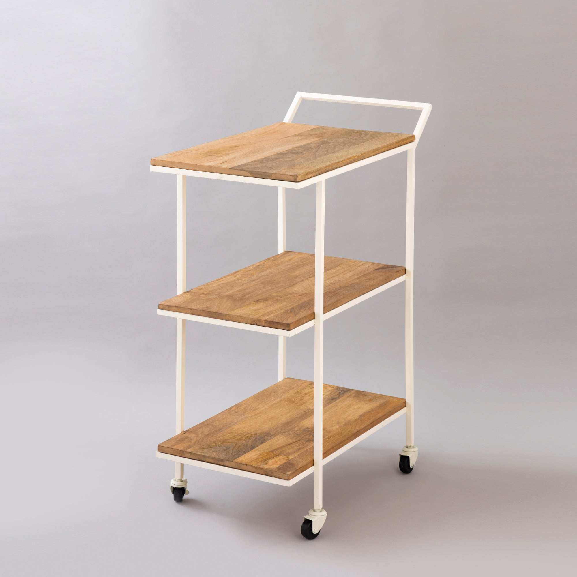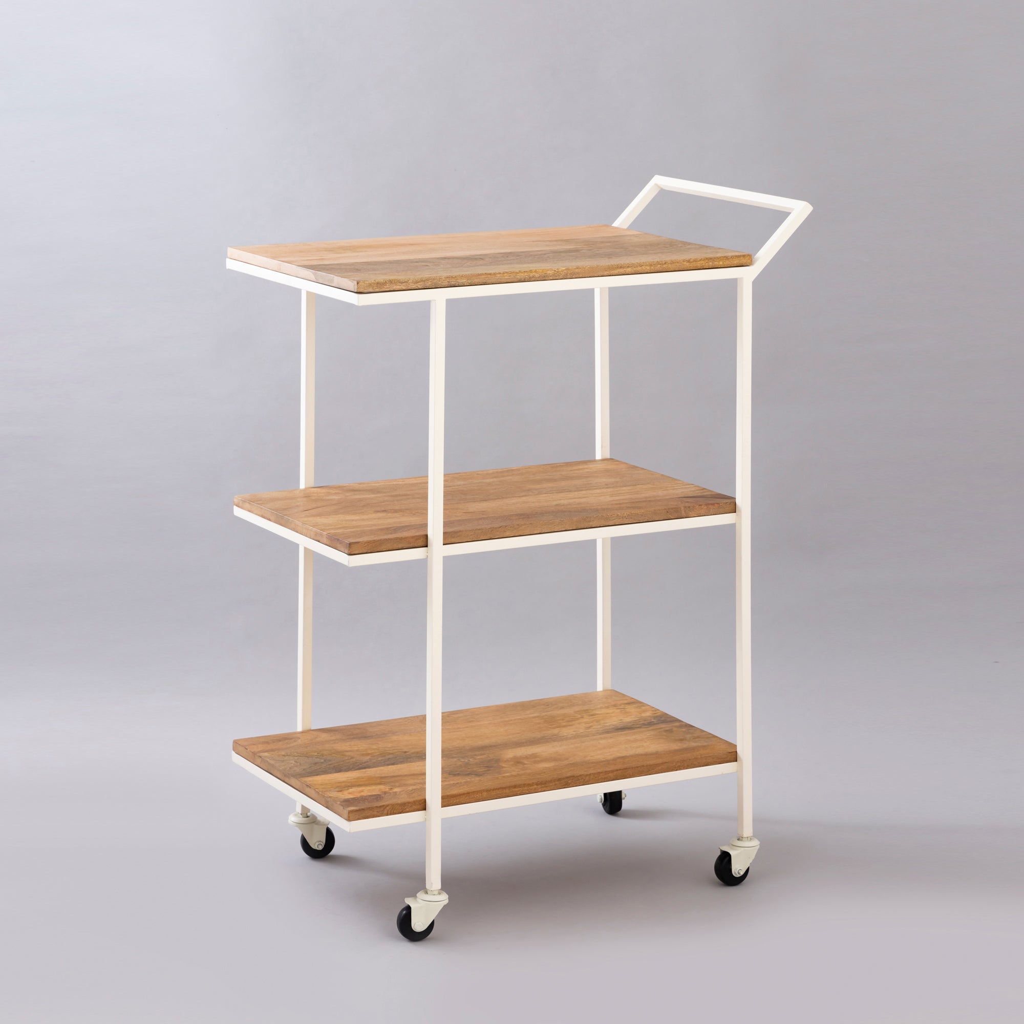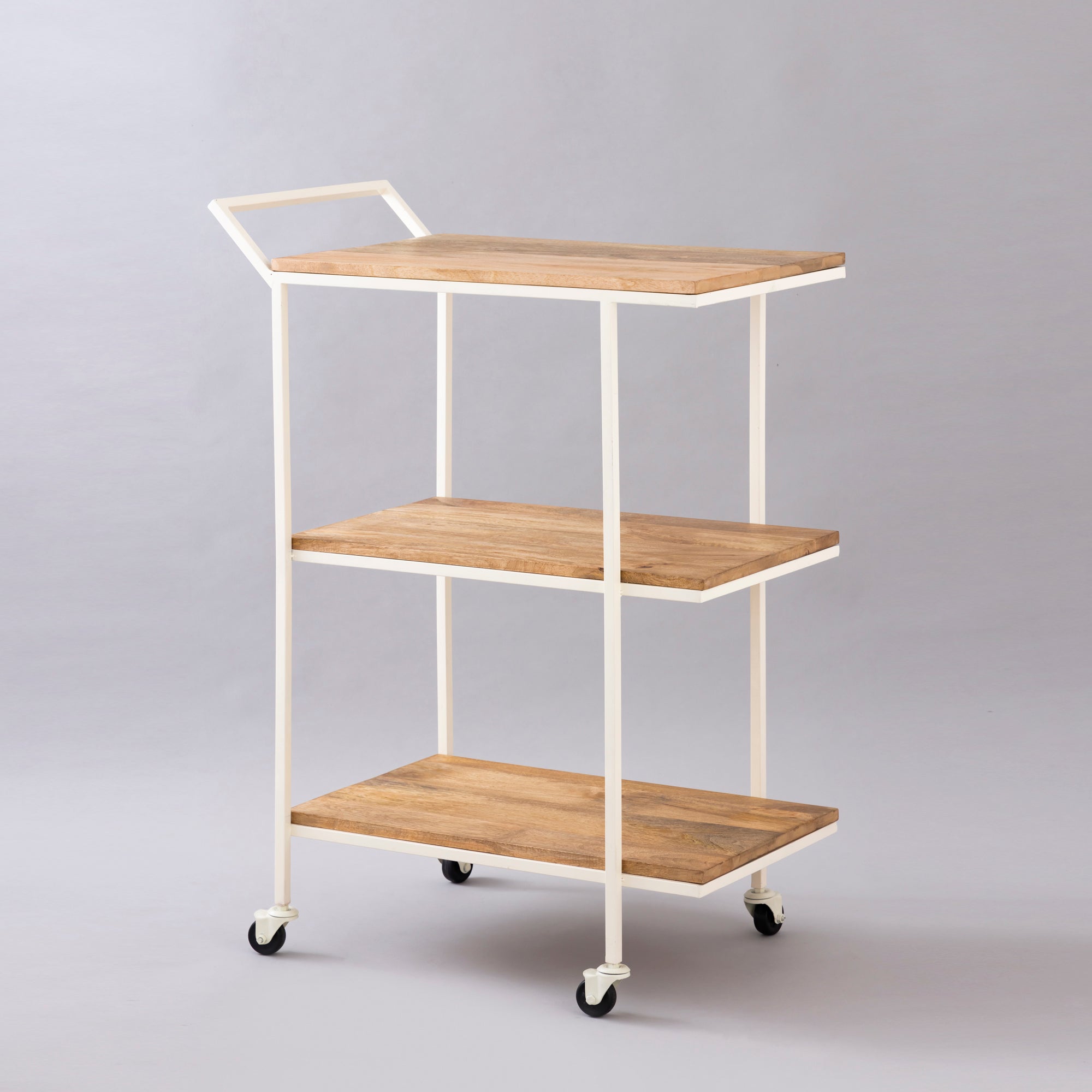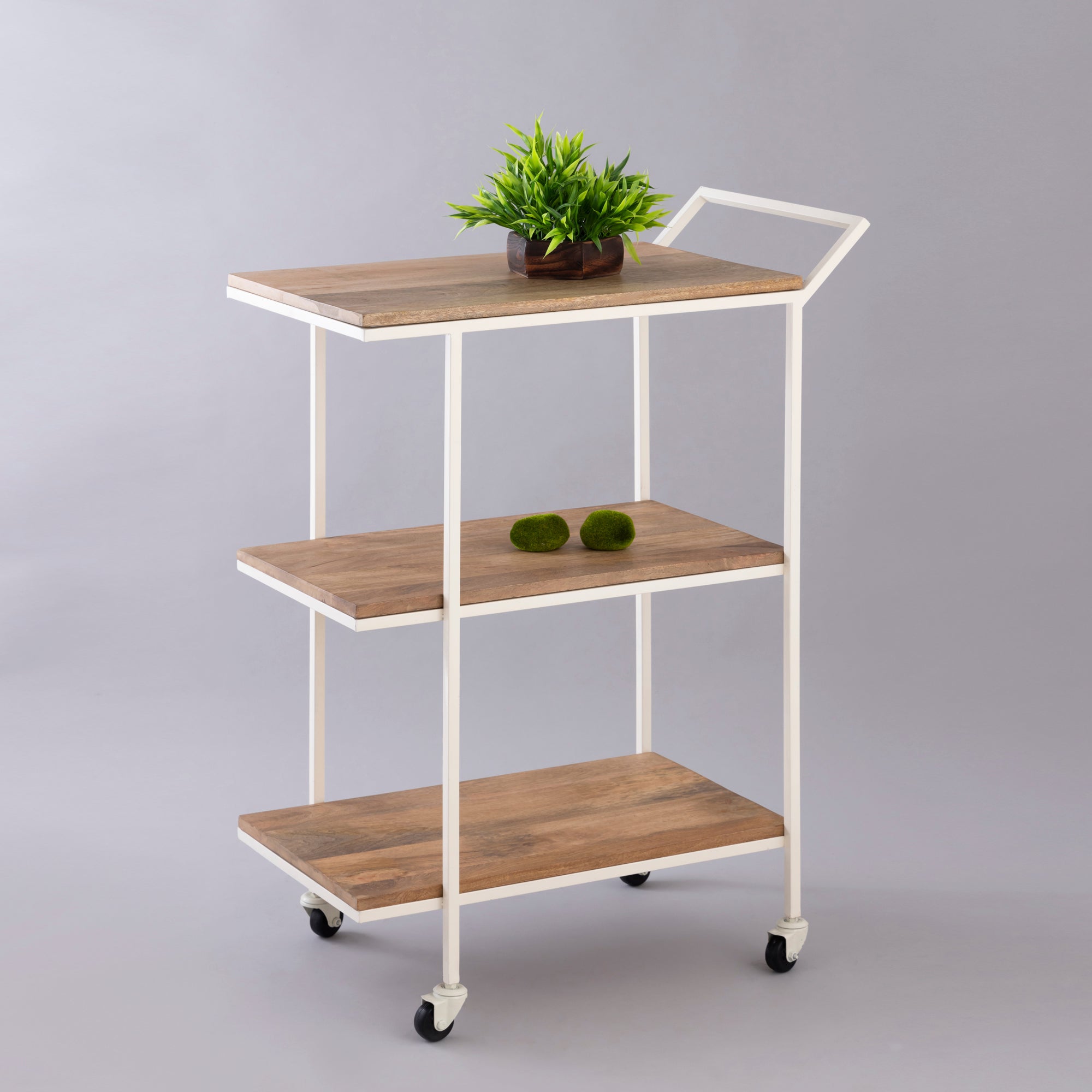 This trolley is more of a servicing and hospitable decor in look and structure. Made of Iron and Natural wood, this brings in an element of nature, even placed in the formal office spaces. This trolley also helps in organizing other parts of the house with articles, carried through it for its robust quality.
