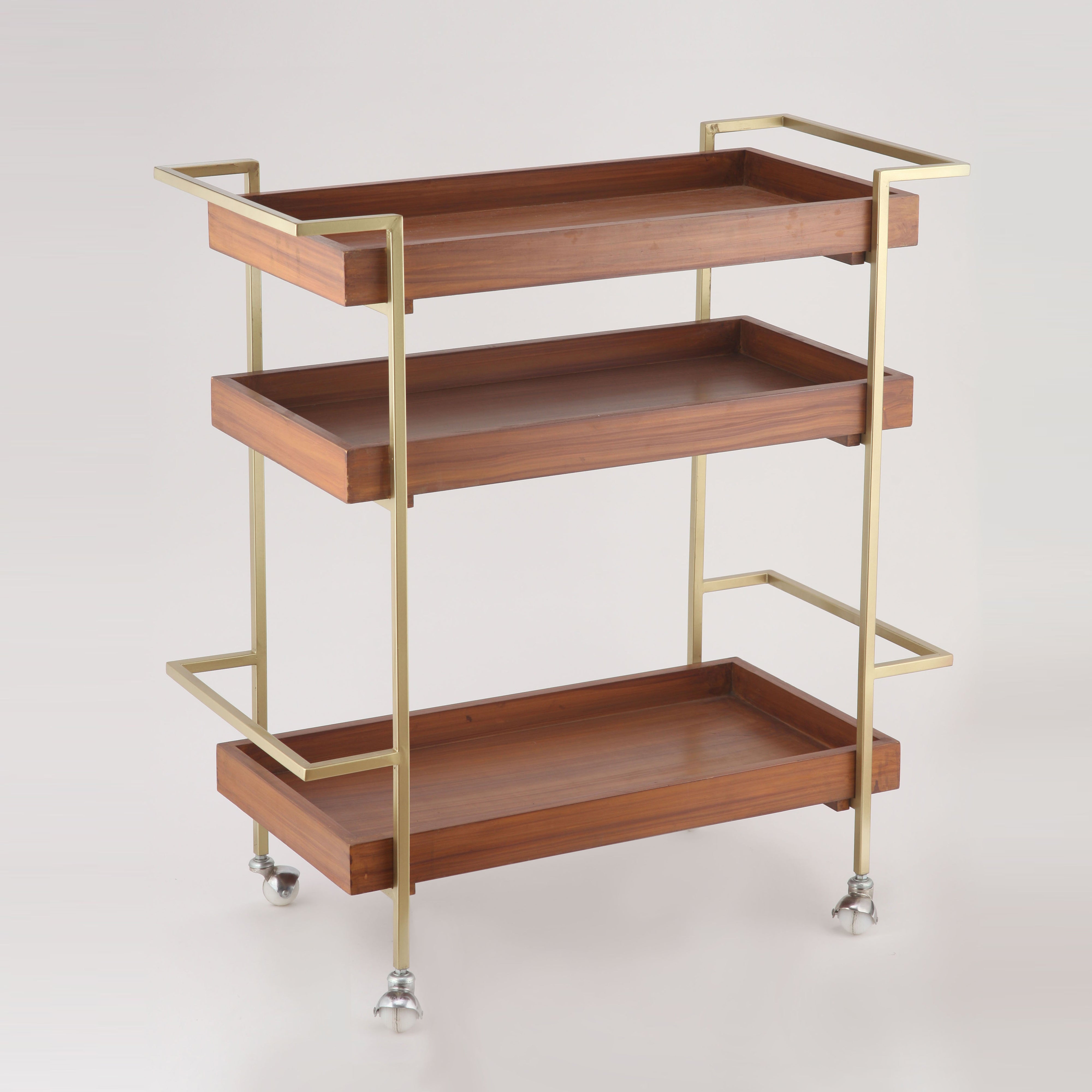 This three-story portable trolley is ideal to be used for ornamental cum storage purposes. It has a traditional style, thanks to the trolley's golden metallic framework and rustic brown racks. Secondly, this trolley is ideal for carrying beverages at the bar.