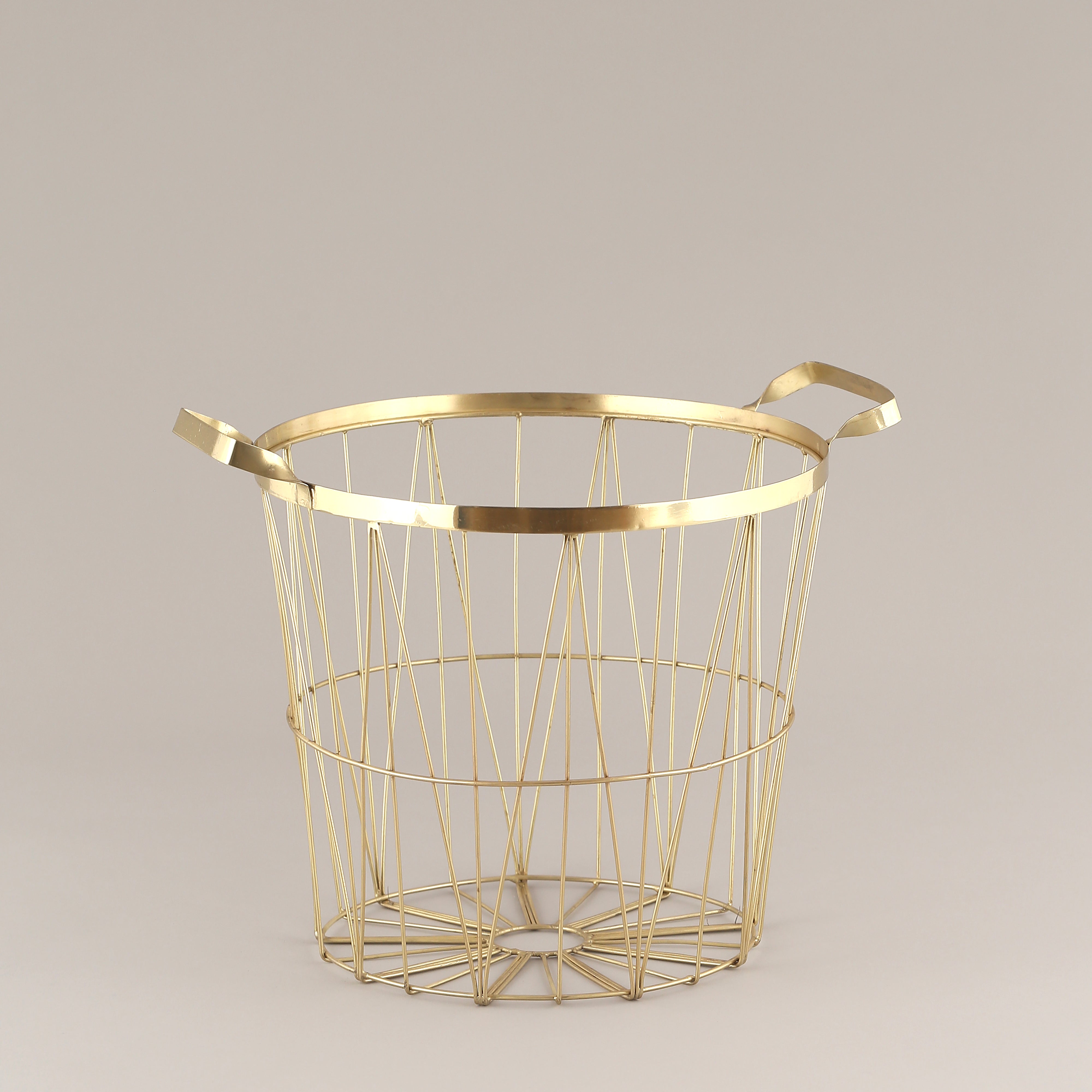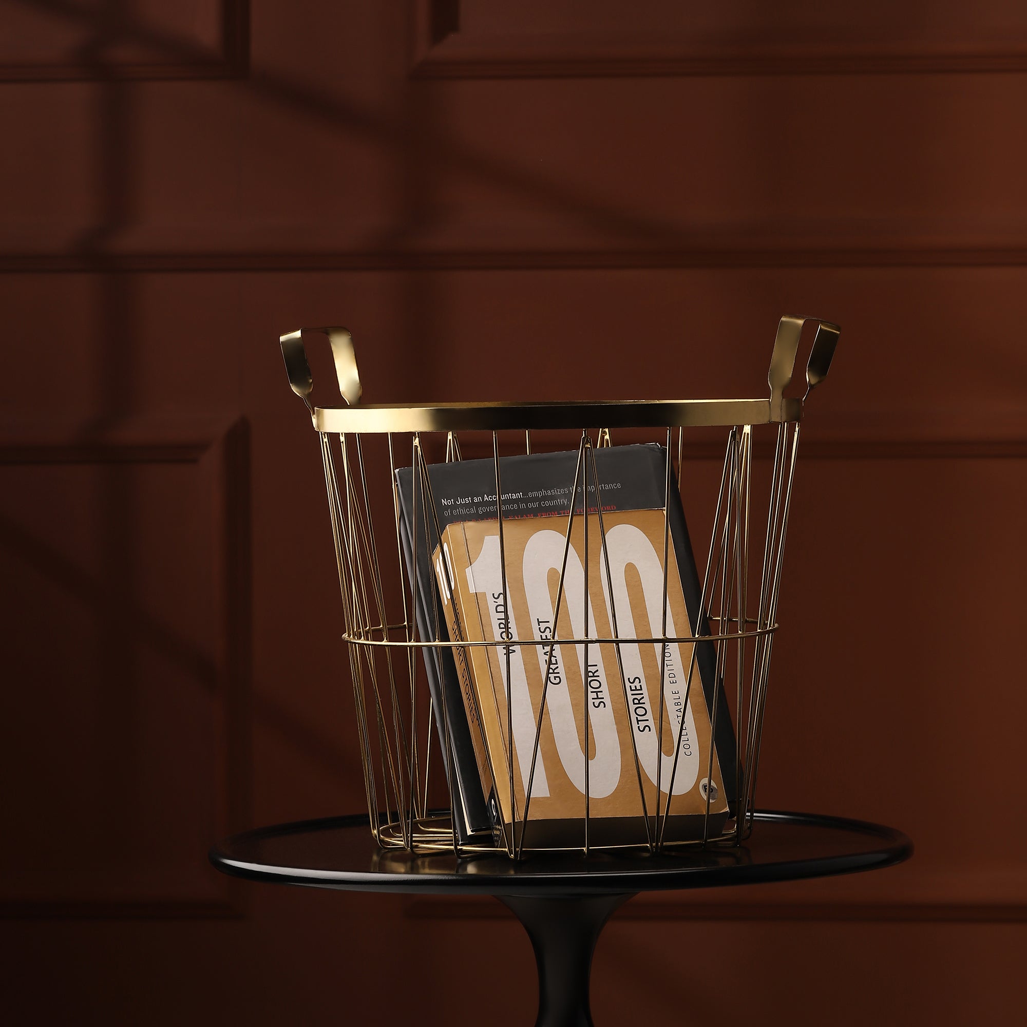Include this beautiful brass plated steel wire basket suitable to manage the kitchen, clothes, bin more efficiently. Modern metal works add a stylish twist to your storage. This basket makes your storage and organization not only functional but also beautiful.