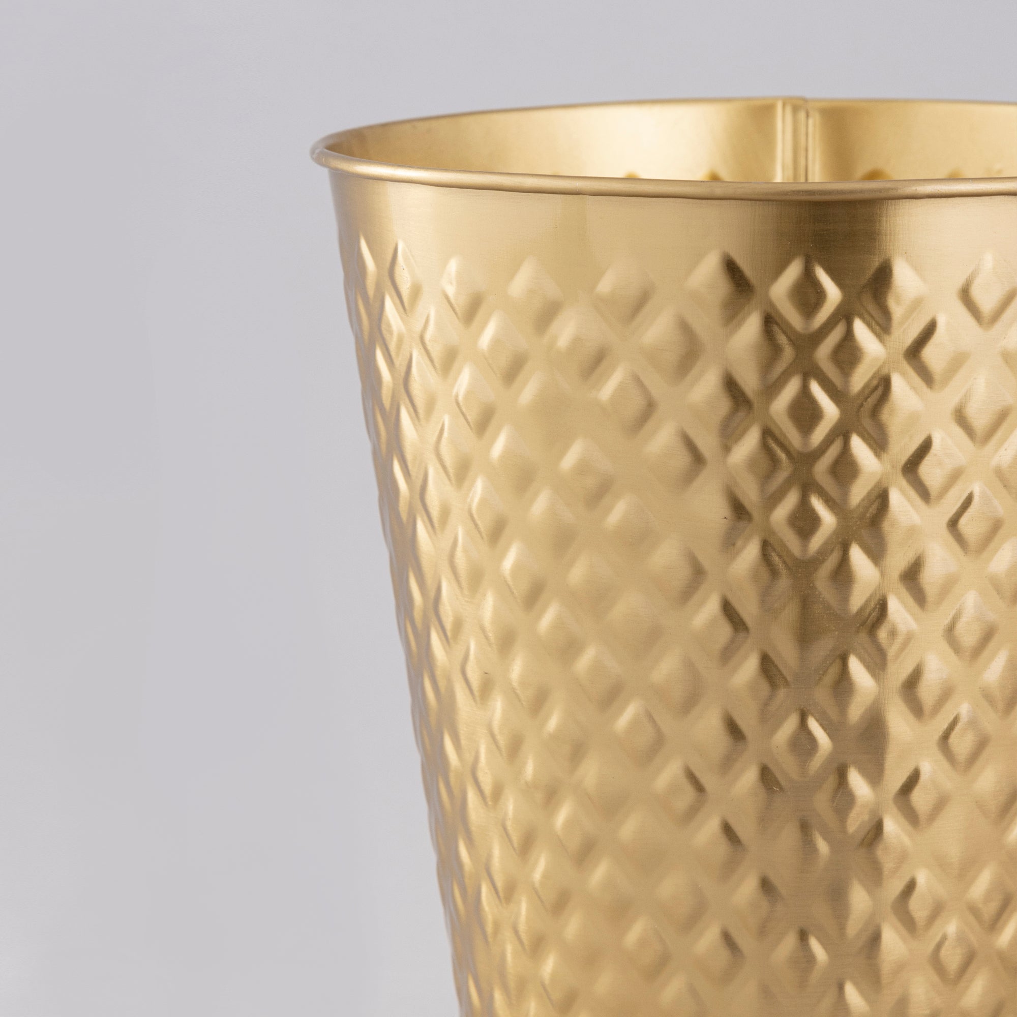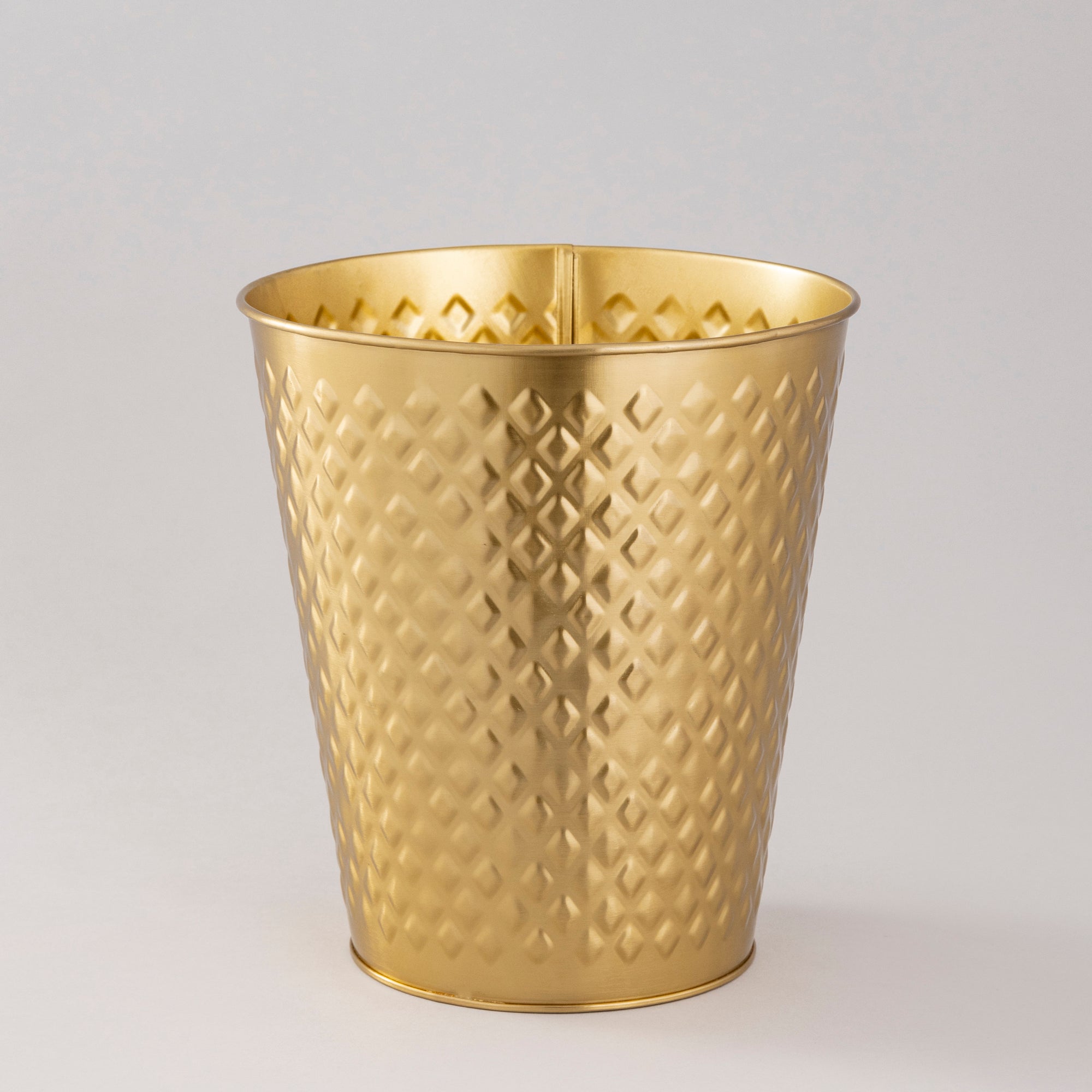 This Solitaire Hammered bucket comes in multiple colours - round opening waste bin is the perfect item for your office, kitchen and kid's room.The waste bin is made of high-quality Galvanised iron, and its antique Gold Plated finish makes it suitable for every house of office scheme.