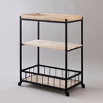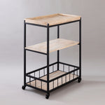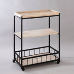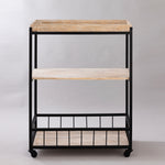 The whole design and craft of this Iron and Wood trolley with sleek contours, highlight the articles placed within it. The design and structure are straight to the point in representing to fulfill the purposes. The wheels give an adaptable drive to every nook and corner of the house wherever it is needed, complementing the flexibility of the natural look suiting any scheme of the room.