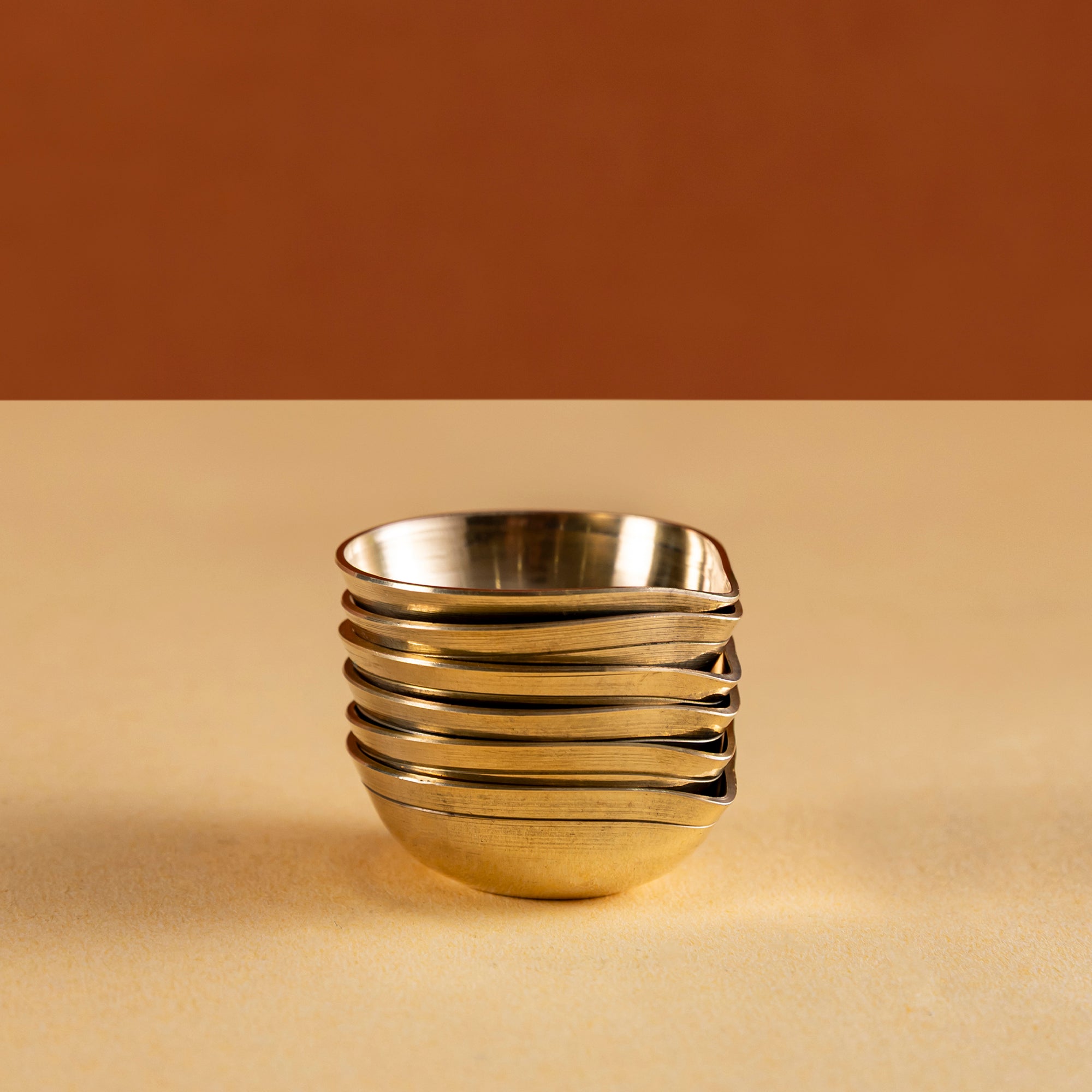 Elegant handcrafted brass diyas designed in a traditional leaf shape. Perfect for festive celebrations, rituals, and daily prayers, these diyas bring a warm golden glow that enhances the spiritual ambiance of any space. Symbolizing purity, positivity, and light, they make a timeless addition to your home décor and an auspicious choice for gifting during festivals like Diwali, Navratri, and weddings.
